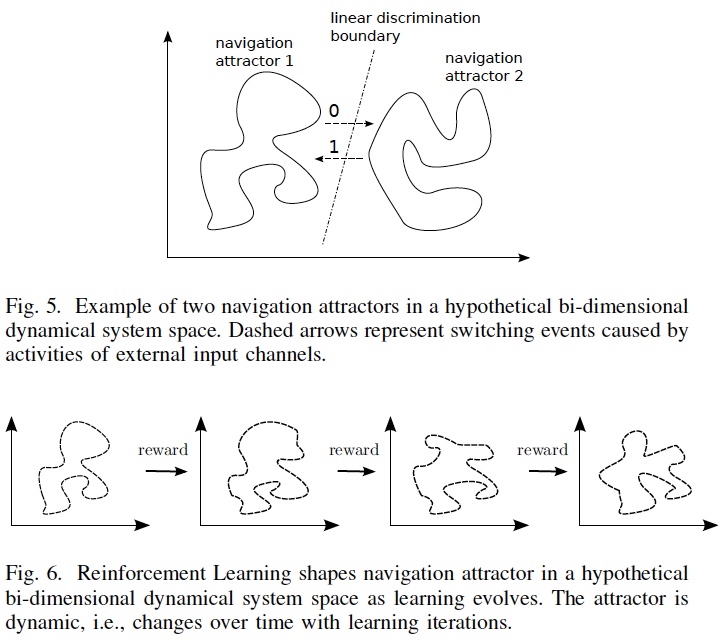The proposed RC framework builds upon the notion of navigation attractor or behavior which can be embedded in the high-dimensional space of the reservoir after learning.